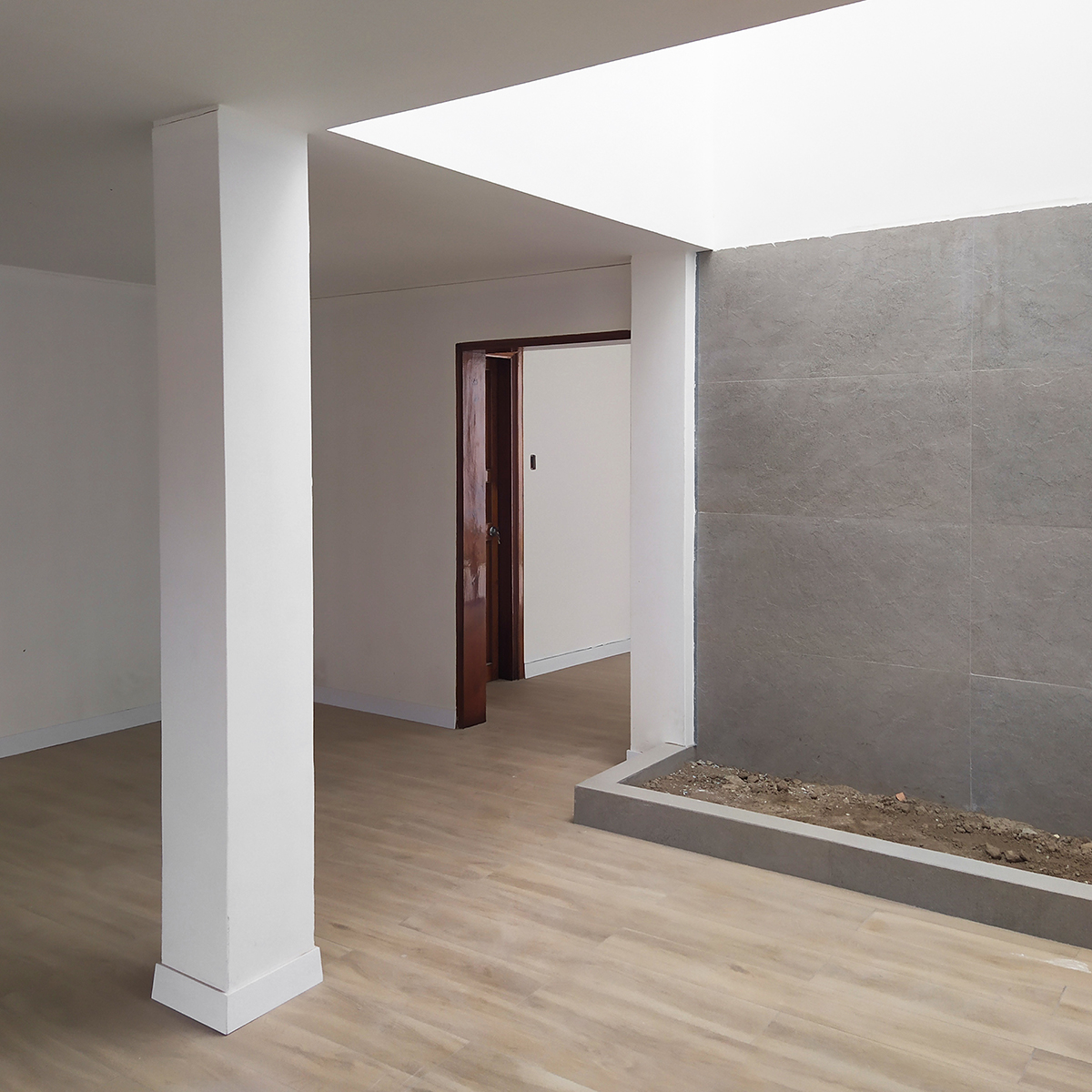 Descripción: Remodelación de vivienda en San Isidro, con un terreno de 455 m2 y un área techada de 380m2. La vivienda cuenta con un patio interno y un patio posterior. El encargo propone la remodelación del primer piso junto con los dos patios y fachadas.