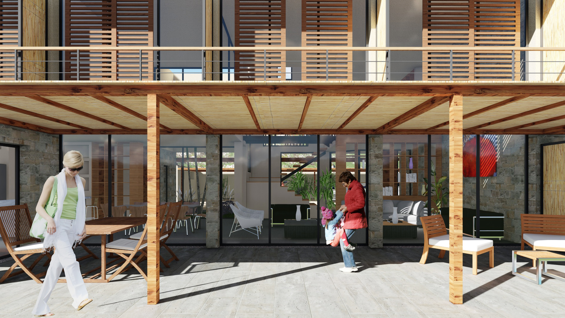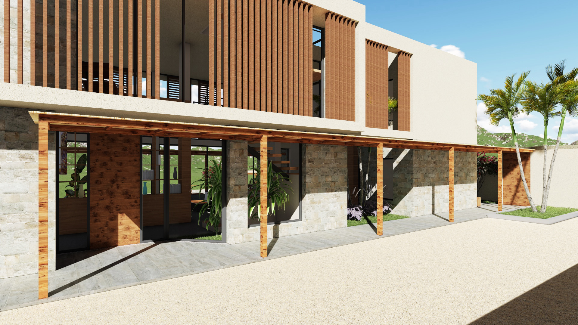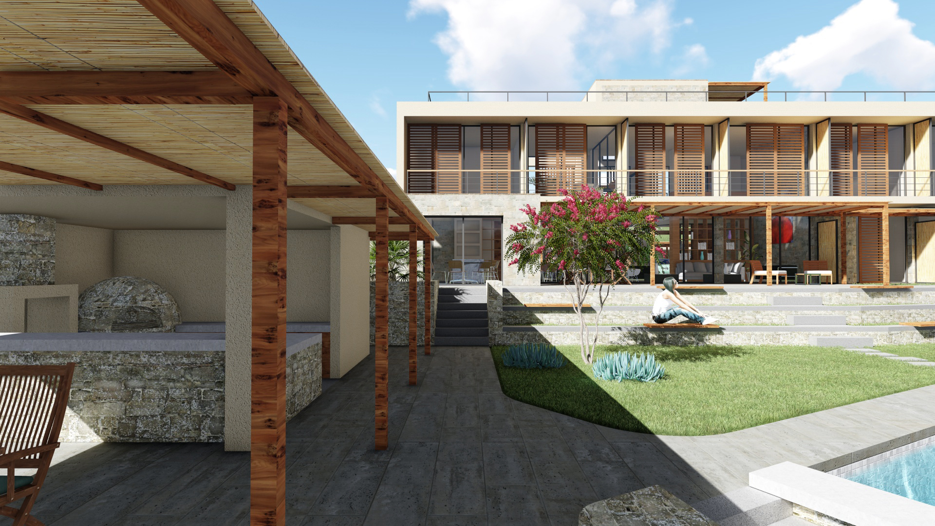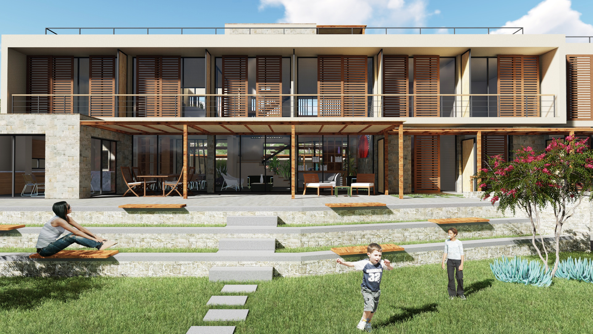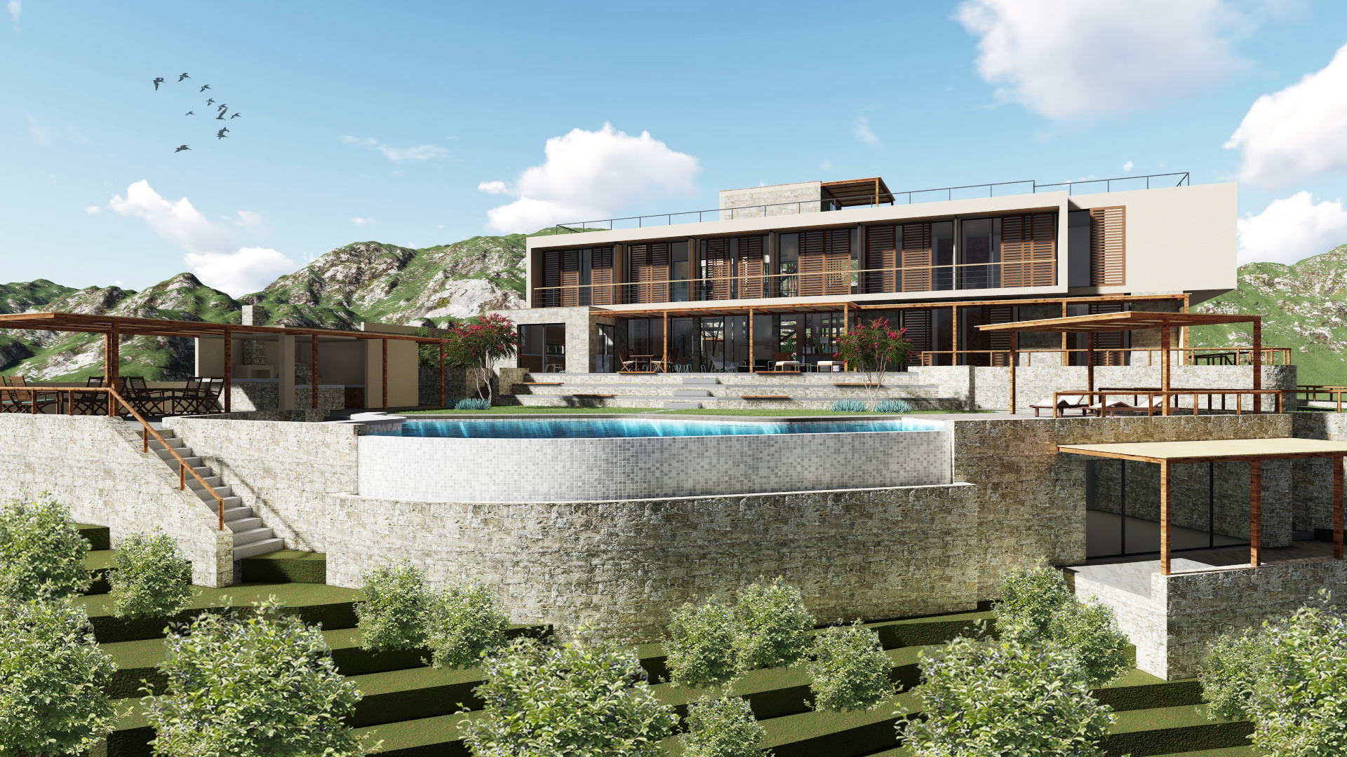 Descripción: Vivienda unifamiliar en Lomas de Pachacámac. Ubicada en un terreno en pendiente con vista al valle de Pachácamac, se propone una vivienda lineal situada en lo alto del lote que permita la vista de todas las estancias hacia el valle.