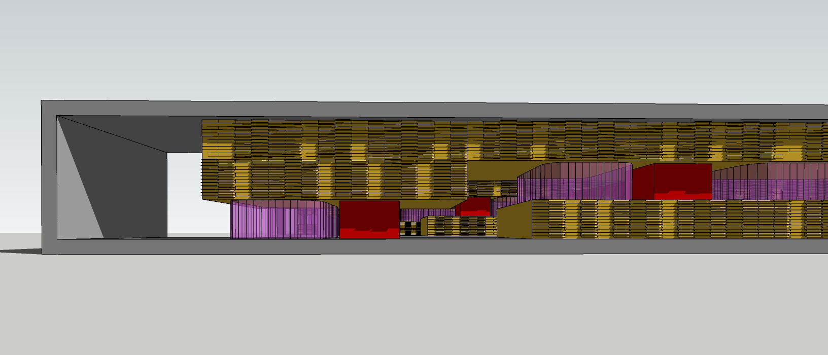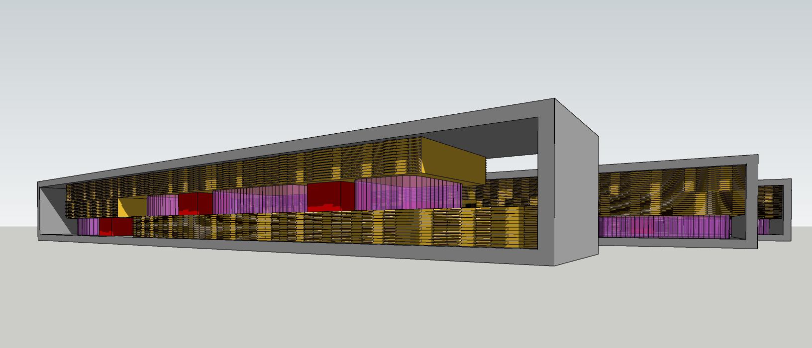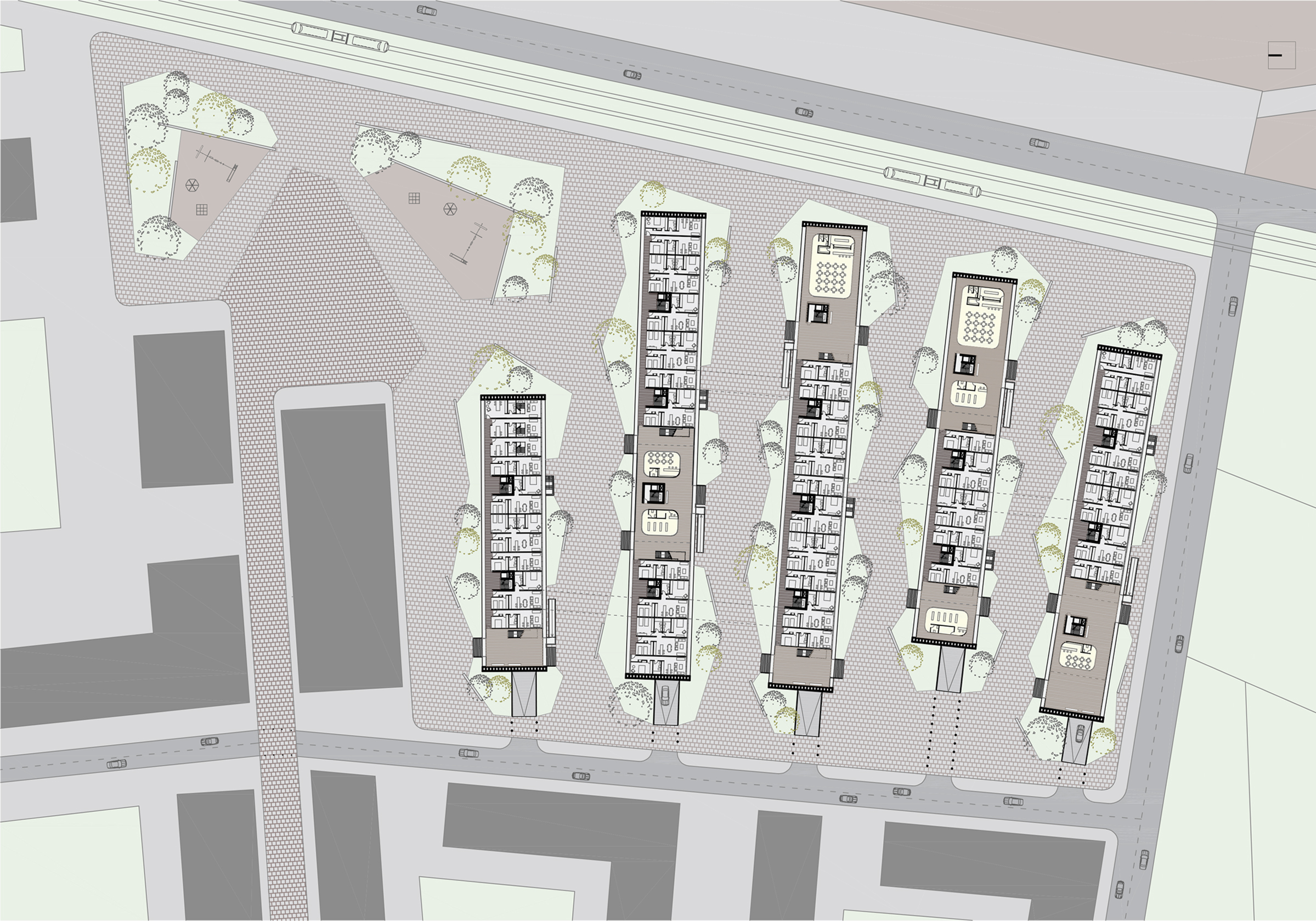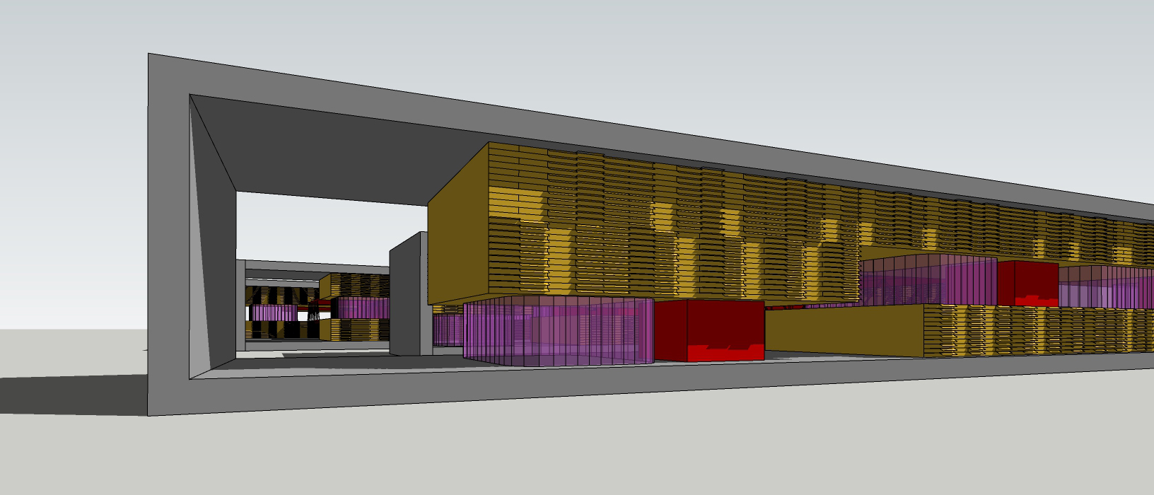 Descripción: Proyecto residencial + comercial generando condiciones de hibricidad de usos mediante la no estratificación de los mismos. Consiste en una serie de bloques de viviendas conectados por pasarelas a los que se les realizan perforaciones donde ubicar los usos comerciales.