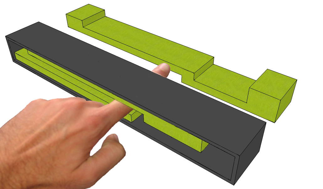 Cada bloque se resuelve mediante una envolvente de hormigón armado apoyada sobre los núcleos de comunicación vertical. La fachada se resuelve mediante una piel continua de lamas de madera. Los espacios comerciales se materializan como elementos vidriados de color que quedan insertos entre las viviendas a diferentes alturas.